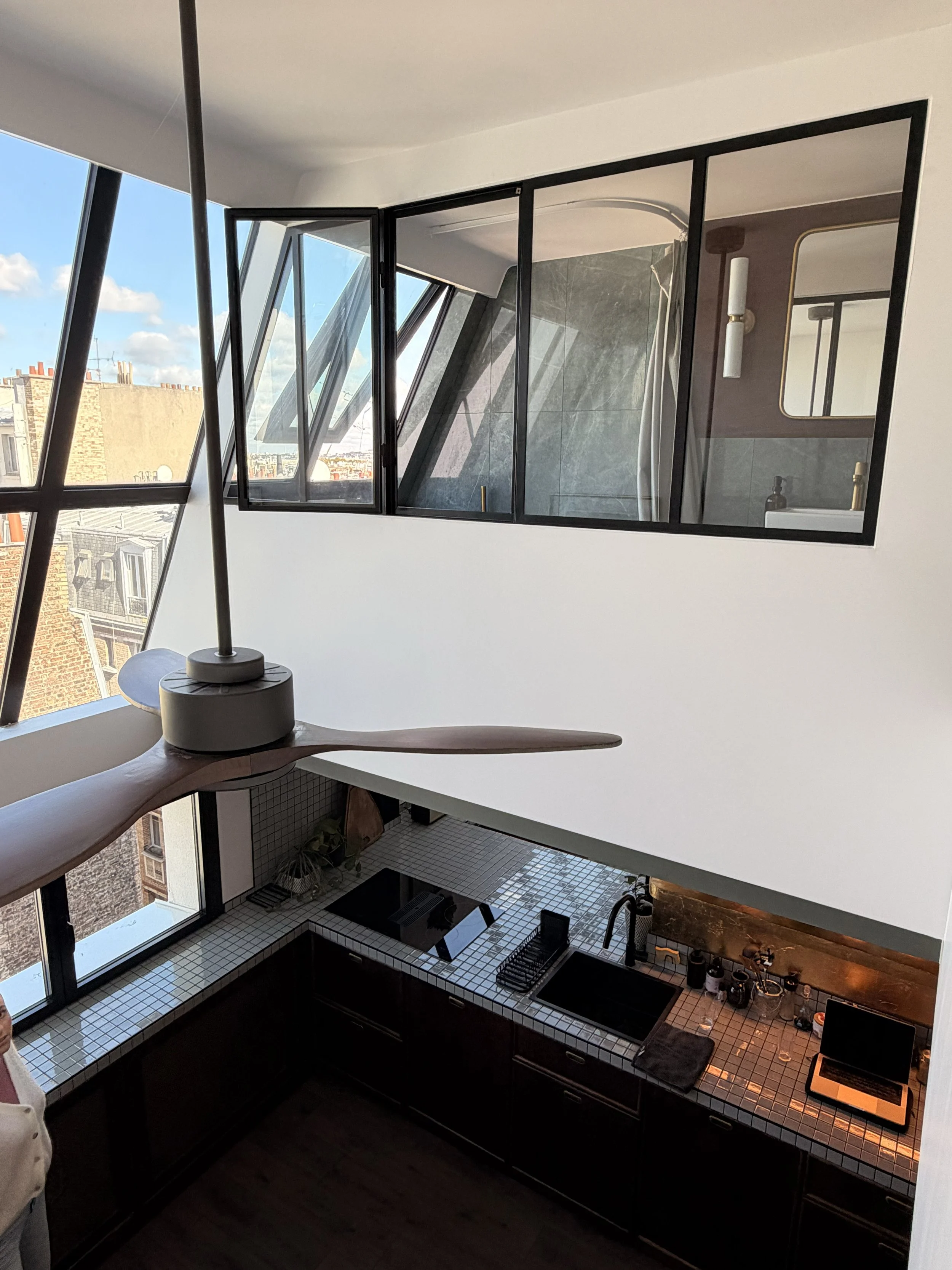 Lumière dorée, parquet brillant, cuisine rétro et petit balcon typique… Ce lieu a ce petit quelque chose en plus : entre élégance brute et vibe mode du quotidien.