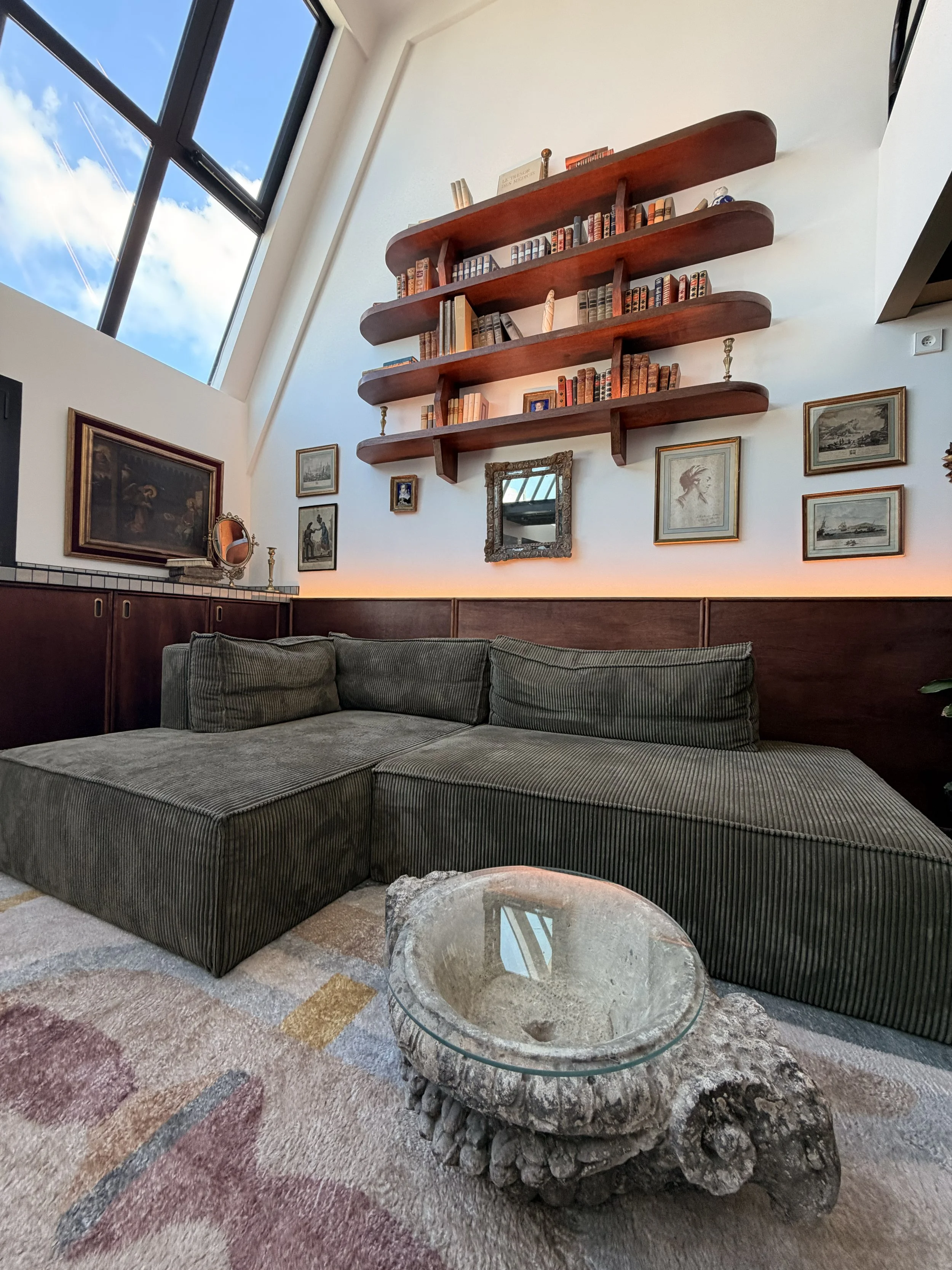 Sous la verrière, une lumière incroyable se reflète sur le parquet et révèle tout le charme de ce lieu unique. Un espace lumineux et inspirant, parfait pour un shooting mode spontané et plein de caractère.